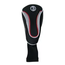 - Barrel type head cover with graphite friendly sock, slip-over design. Black-gray color combination with red and white trim lines.
